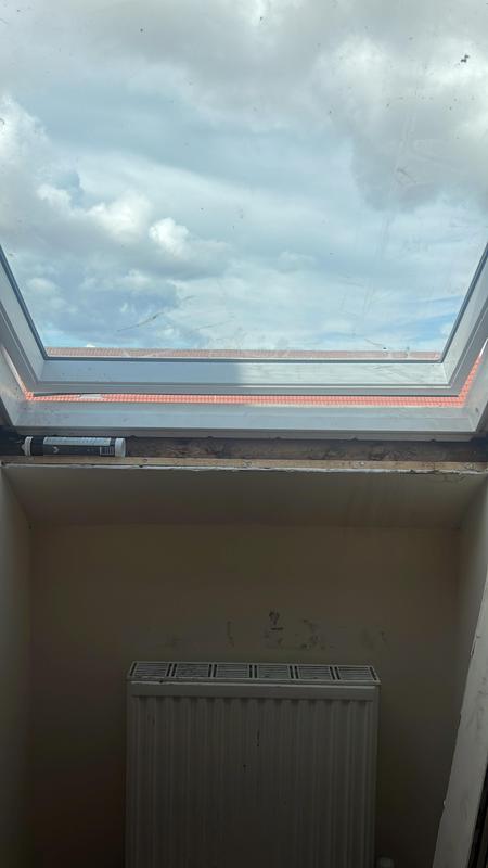 C - Image 1 "We booked M Mcguigan Landscapes to fit our Velux window (taking the old one out and replacing it) We confirmed the window was correct via a link and WhatsApp and he said he had all the extra parts needed to fit it. We are absolutely devastated at the mess he has left. The window was put in squint (one side 5mm out therefore would not close). He left mud over the glass, windowpane, bedroom wall and radiator. He also soiled out stair carpet with his muddy boots. Tiles were also attached back to our roof using tape which looks horrendous. On having him come back to the house to reassess his job, he was denying any issues with the placement of our window. He told us it’s the worst job he’s had in 15 years and was very frustrated. Due to our experience, we would not recommend."