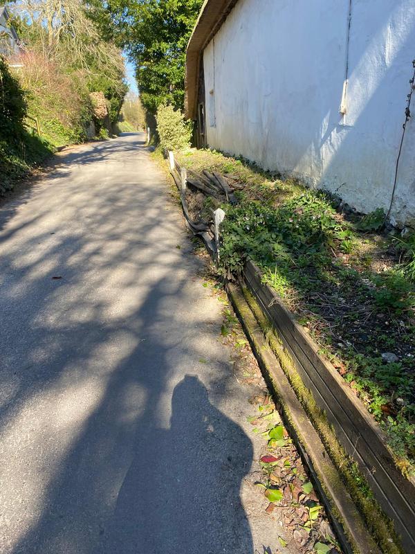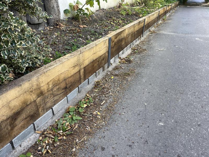 - Roadside bed after with sandstone setts to protect the new oak sleepers from rain water running down the road