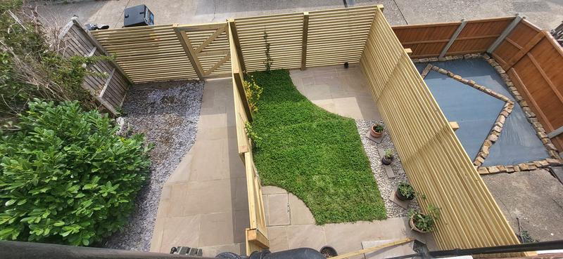 Phillippa - Image 1 "Very happy with the team's work. We had a scruffy patch of weeds, next to a broken up old concrete path that we share with our downstairs neighbours, and it was all open to the garages in the lane behind the building. Marcin and team put in modern fencing, tailor-made to fit the space and tailor-made gates to match (another contractor who quoted wouldn't put the gate where we wanted it, because they proposed prefab fence panels of fixed size). Paving is very even and curved sections cut really smoothly. We weren't happy with the width of the paving to replace the old path, so Marcin himself added more paving and sorted out some concreting without any hassle when I made the request. Communication to sort out the quote was great, I had lots of questions and Marcin answered them all. The team were very polite and tidy. Will happily recommend."