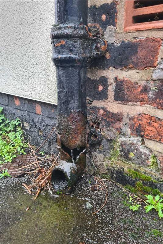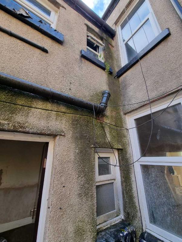 - A blocked gutter & downspout had affected this properties render