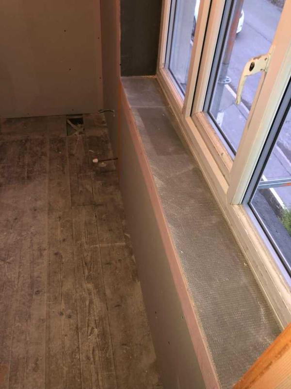 - A thermal reveal board, fixed to a window prior to plaster skim and midway through IWI installation (Nth Wales)
