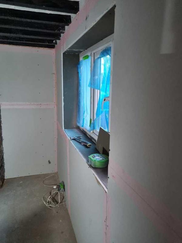 - A thermal reveal board, fixed to a window prior to plaster skim and midway through IWI installation (Runcorn)