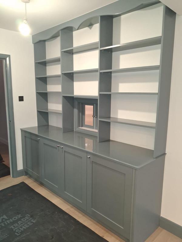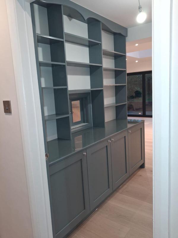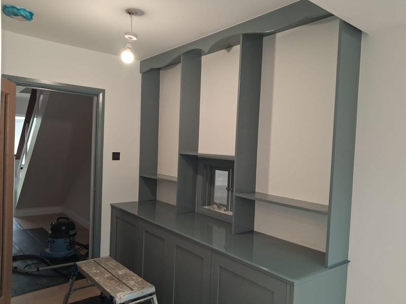 - Office done in Ashford, perspoke shelving made around window wall to accomadate books, room completed with complimentary colours and new radiator