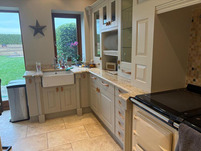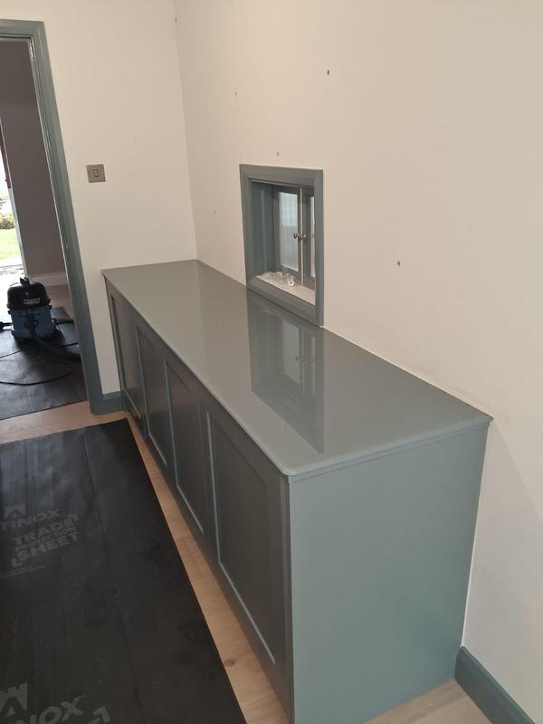 - re painted kitchen cupboards using F&B and sanded down worktop and re oiled