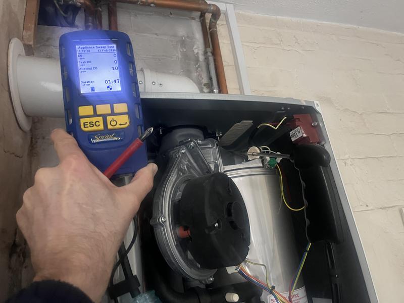 - Boiler service sweep test checking seals are correct, correct readings, no leakage of carbon monoxide Worcester Bosch boiler