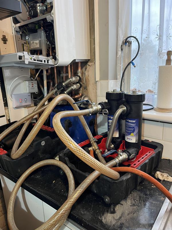 - Installed new filter on return of heating pipework and new cold isolation valve installation in Orpington
