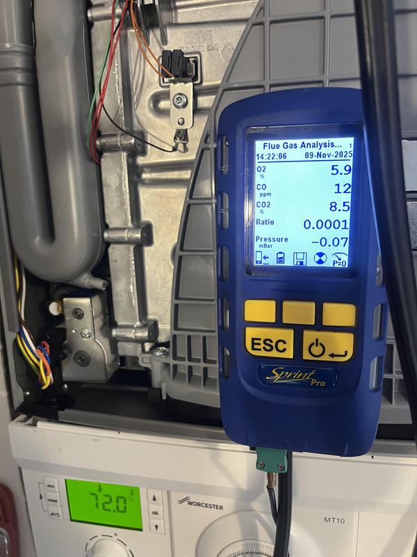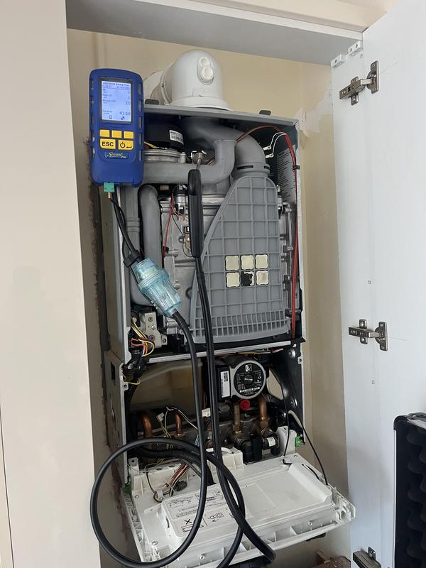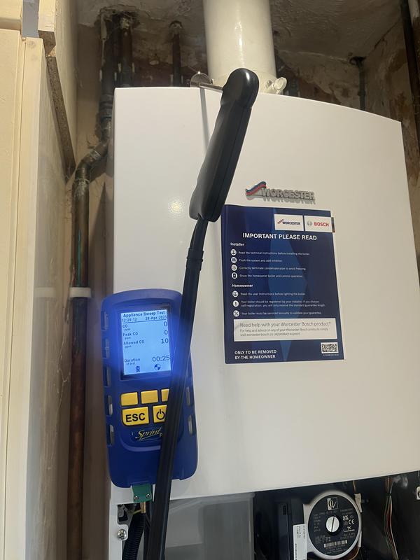 - Boiler service sweep test checking seals are correct, correct readings, no leakage of carbon monoxide Worcester Bosch boiler