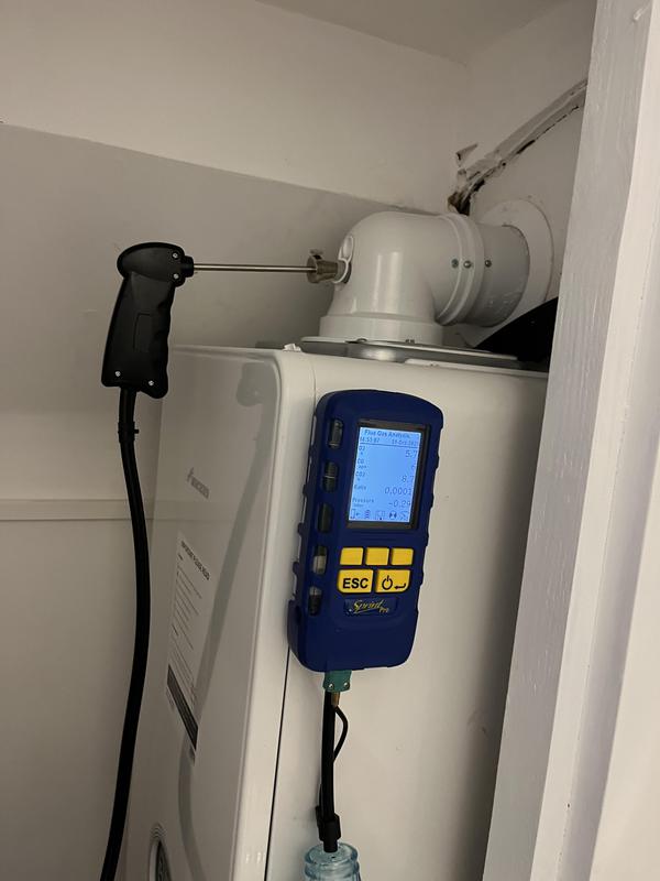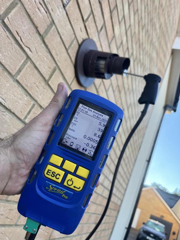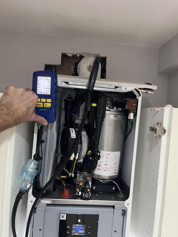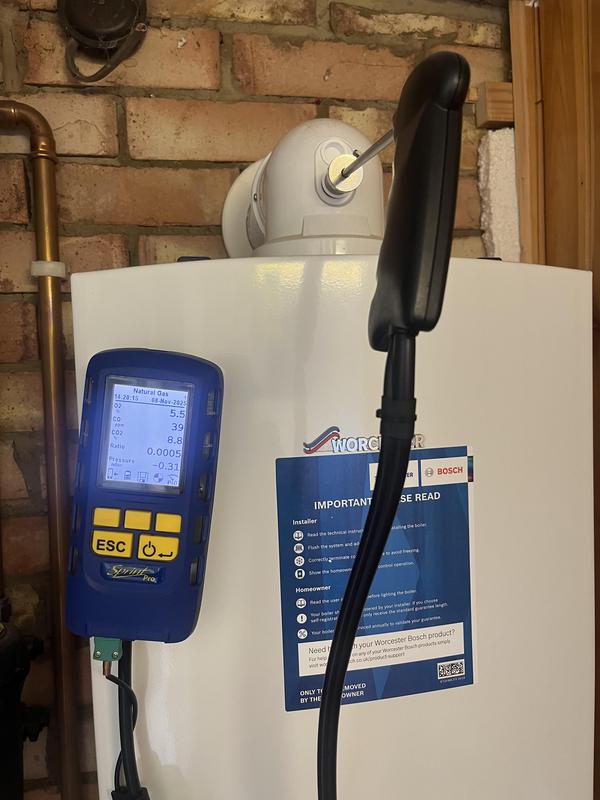 - Boiler service checking air intake for correct readings Worcester Bosch boiler