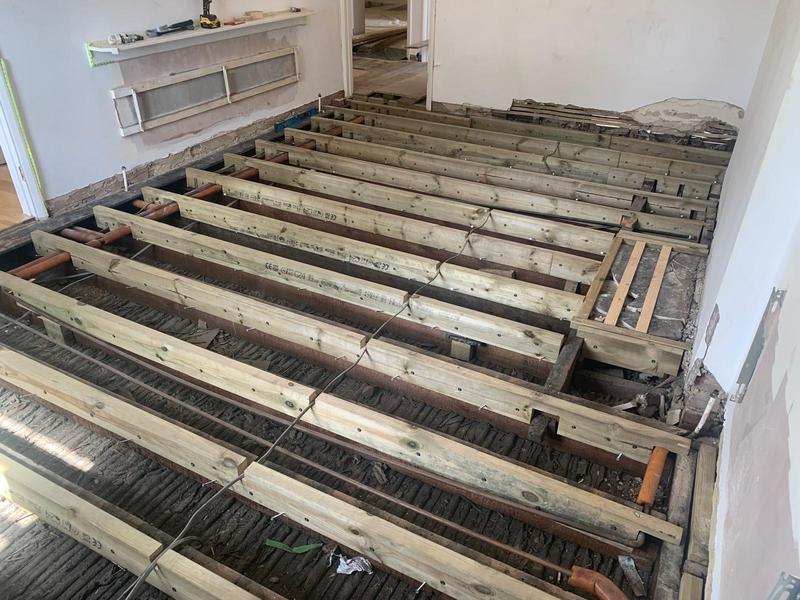 Floor levelling and sanding.