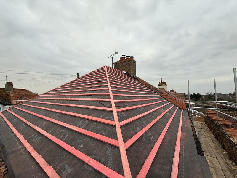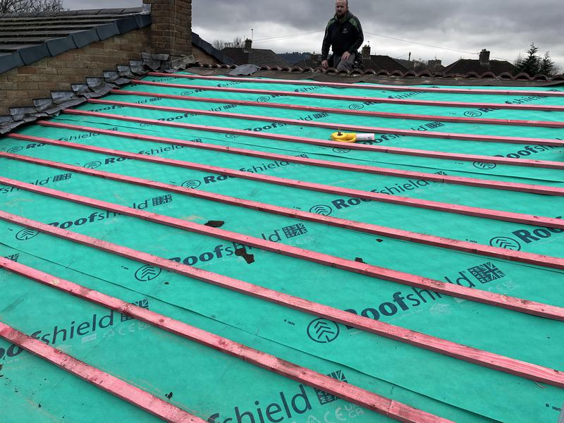 - Progress photos up to felt and batten on a full roof replacement