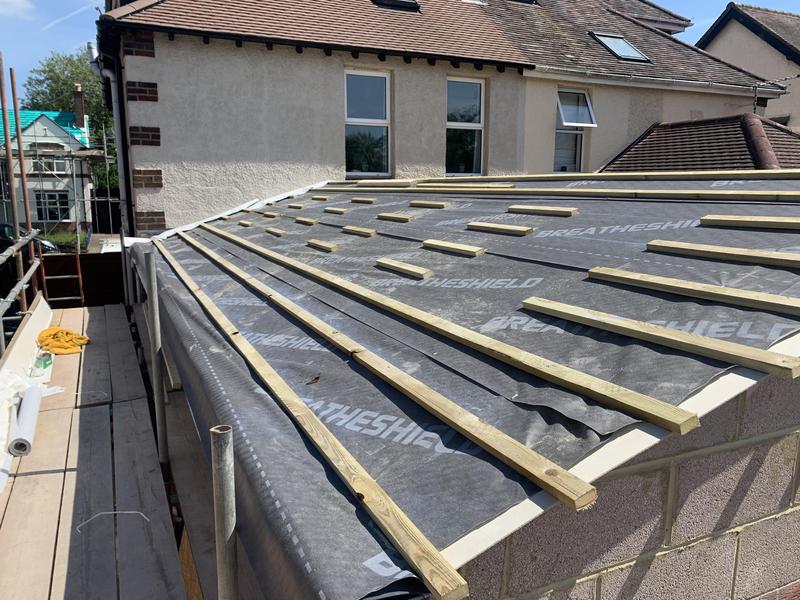 - Full roof replacement is progress photo up to felt and batten