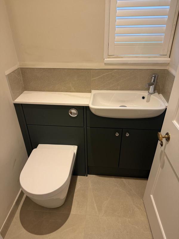 - Compact Calypso Fitted Furniture in small Cloakroom.