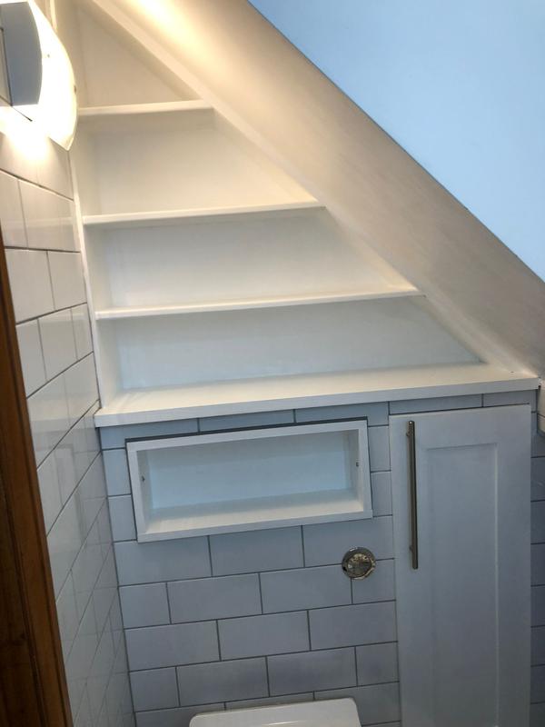 - Made to measure unit for small under stair cloakroom.