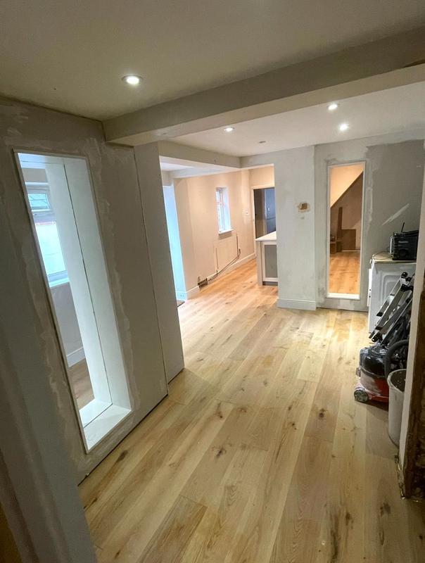 - Room prep prior to Kitchen Installation with Glazed Wall apertures to bring in more light.