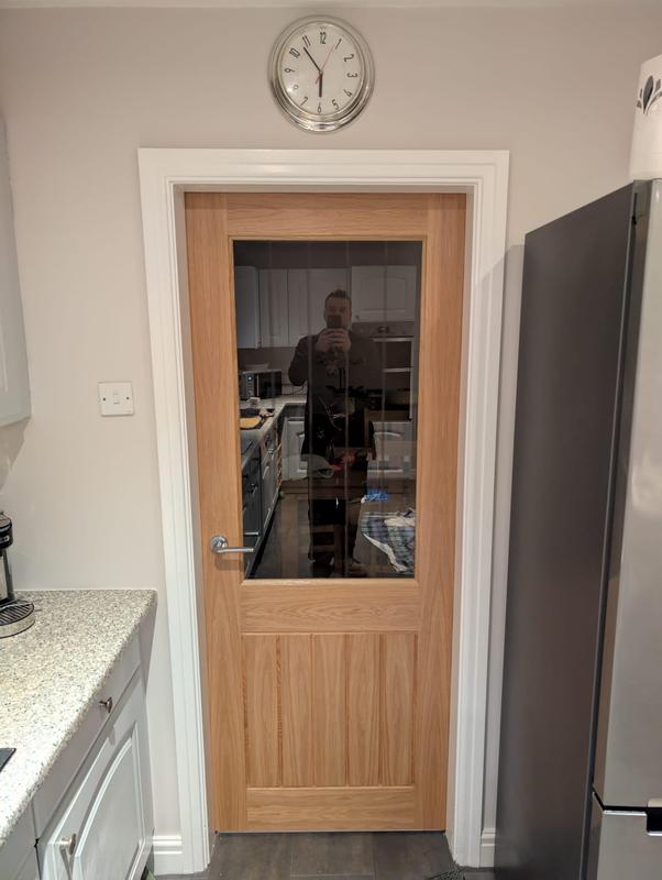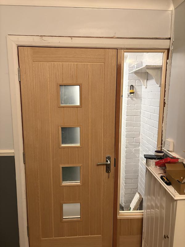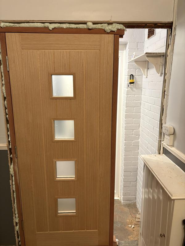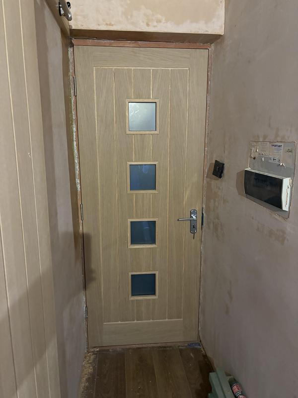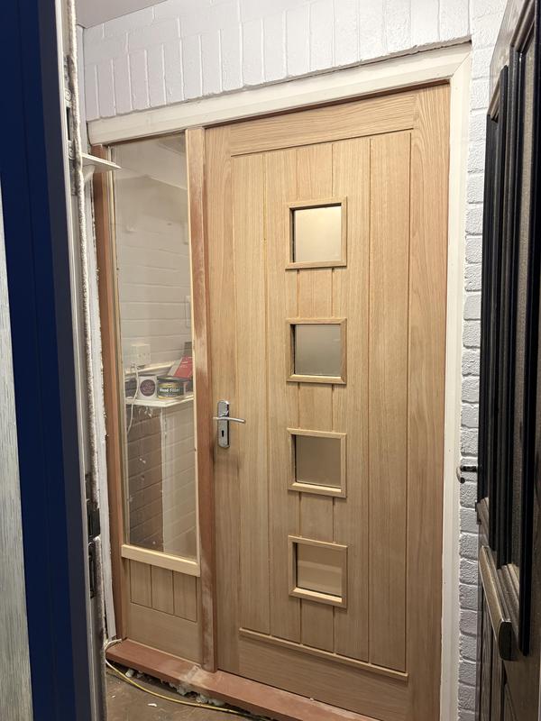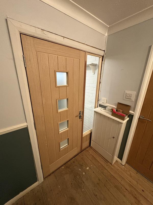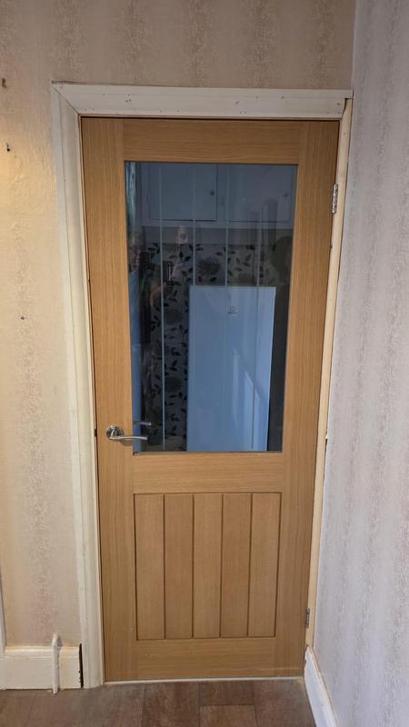 Johanna - Image 1 "We saw this joiner across our road, doing lots of work for our neighbours so we went over to enquire about fitting a new hallway door. He finished up with them for the day and came straight to our house to see and discuss our requirements. Jacob is so knowledgeable and helpful. We'd recently moved in and our hallway door wouldn't even close. Within the week we had a beautiful, oak door and most importantly, a lockable door and no draughts. He built us a brand new frame, fitted our door and replaced the glass with safer, double glazed glass. We were highly satisfied with the length of time to complete the work and how tidy Jacob left our property. I would highly recommend this excellent joiner. In fact he's already booked to replace our dated staircase next month!!! 5*'s across the board. Thank you"