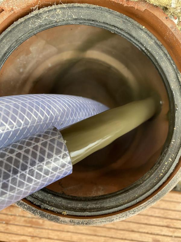 - Powerflush - Showing system water being removed stage 2 of the Powerlfush
