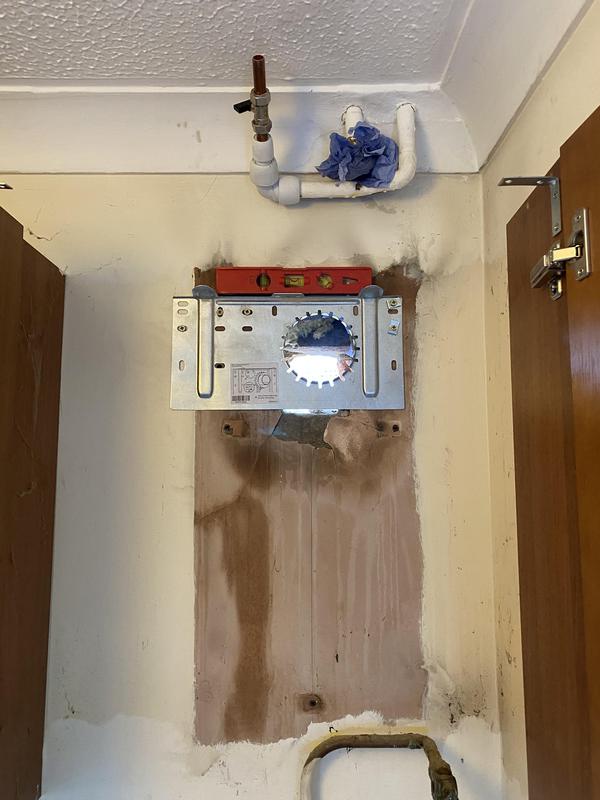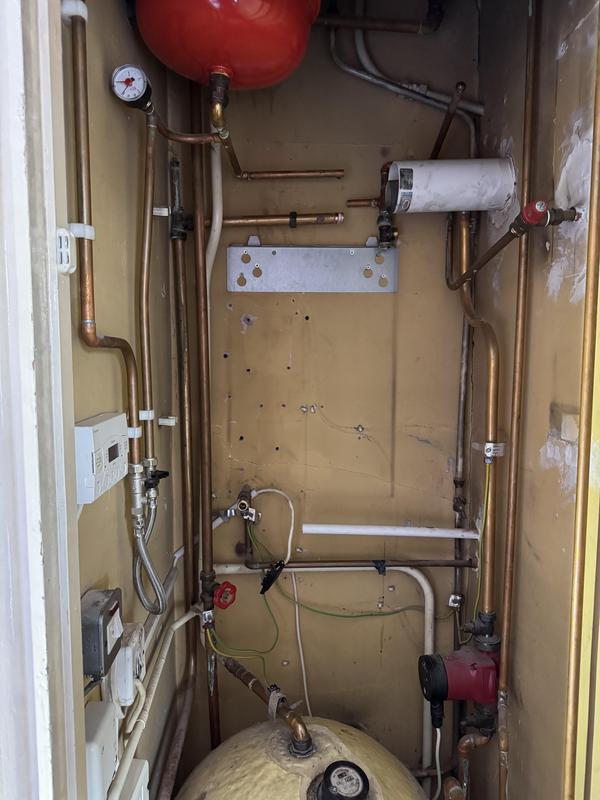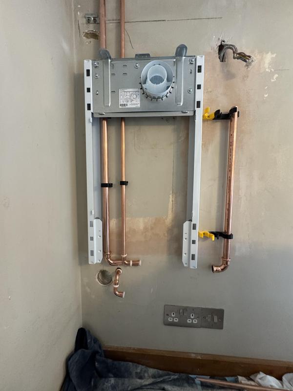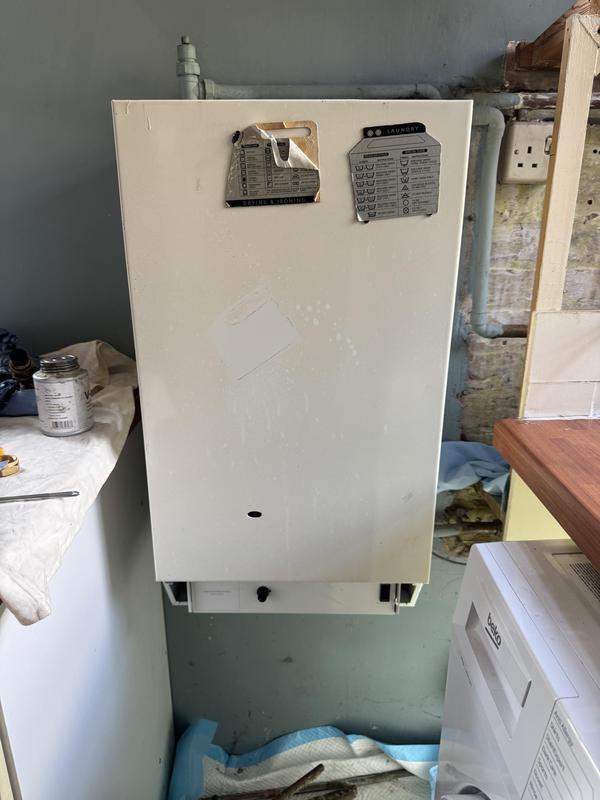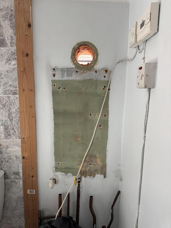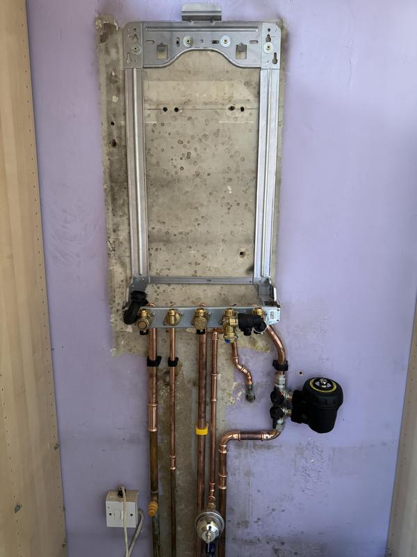 - Boiler Installation - Old Boiler removed and wall plate for new boiler being lined up
