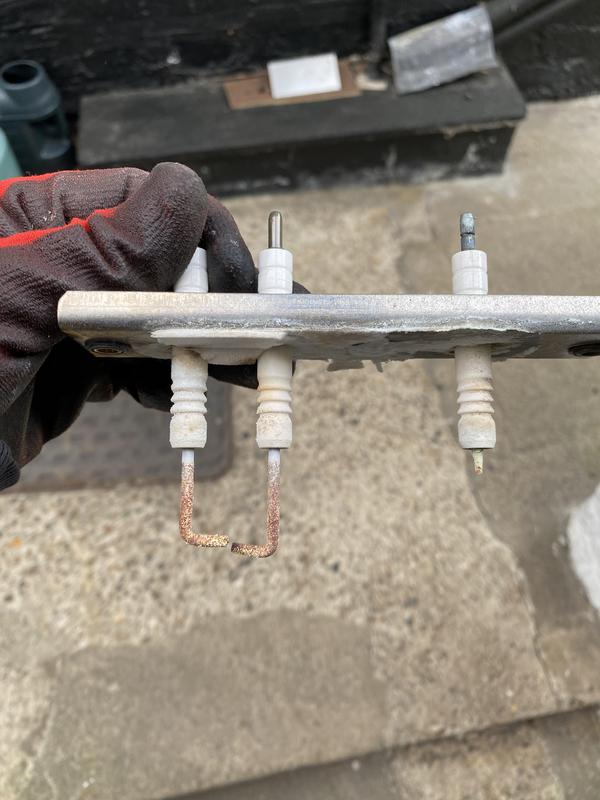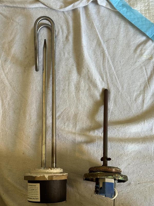 - Imerssion heater. New on left old on right had completely corroded due to hard water. The one on the right started out looking the same as the one on the left!