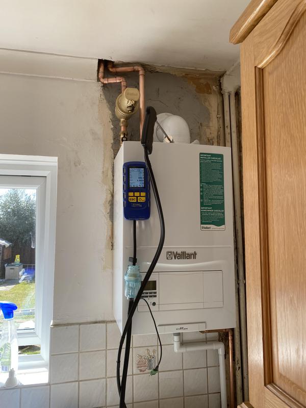 - New Combi Boiler installation converting existing open system being flushed before comissioning