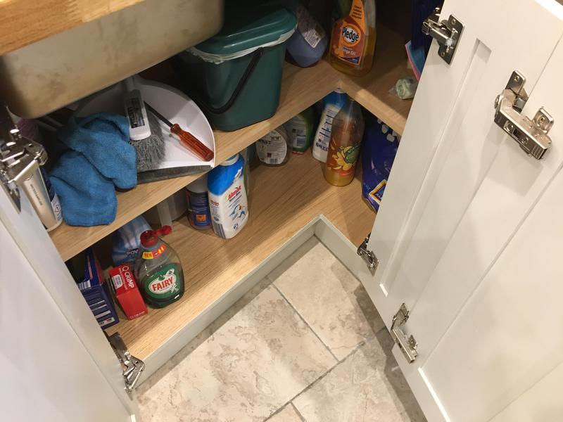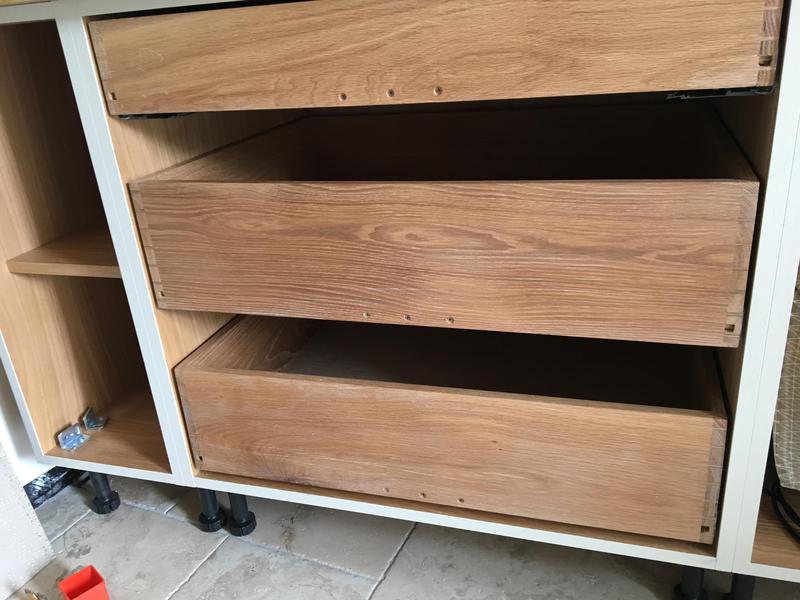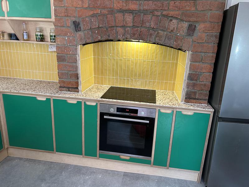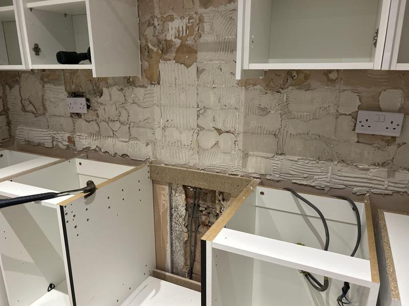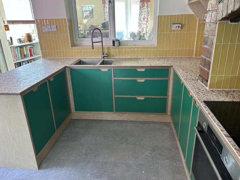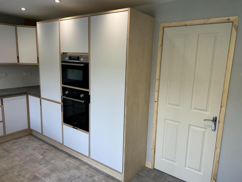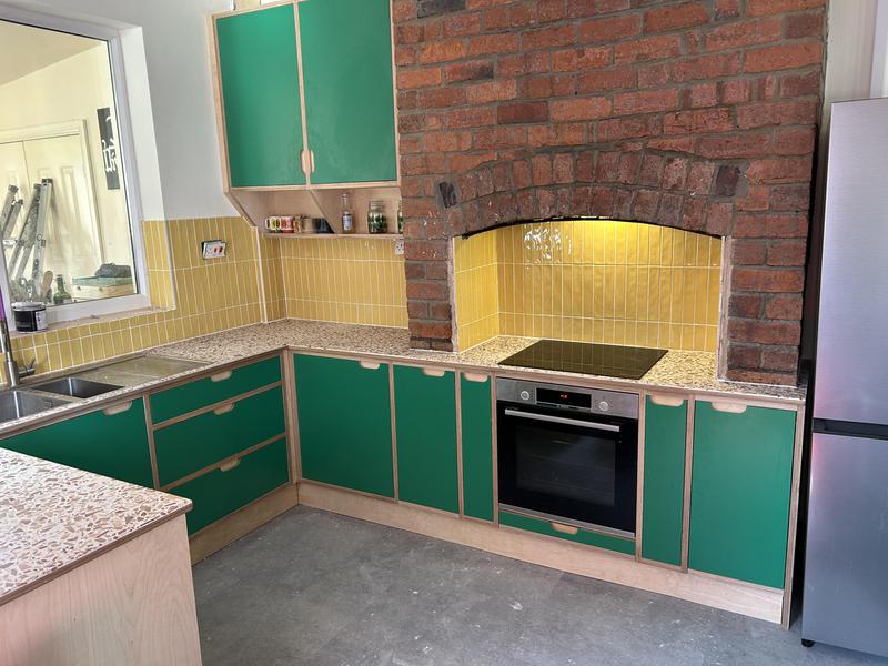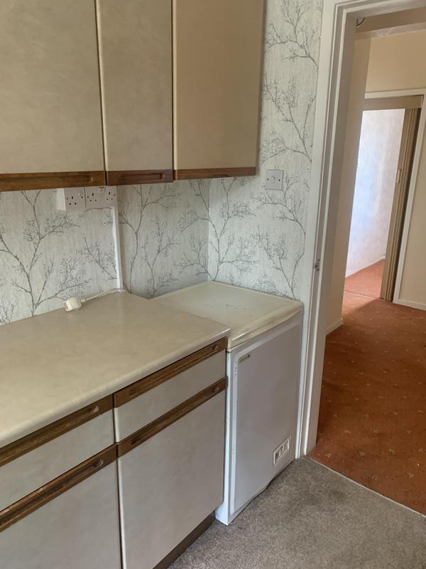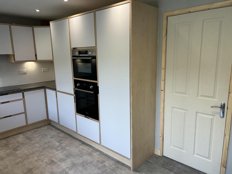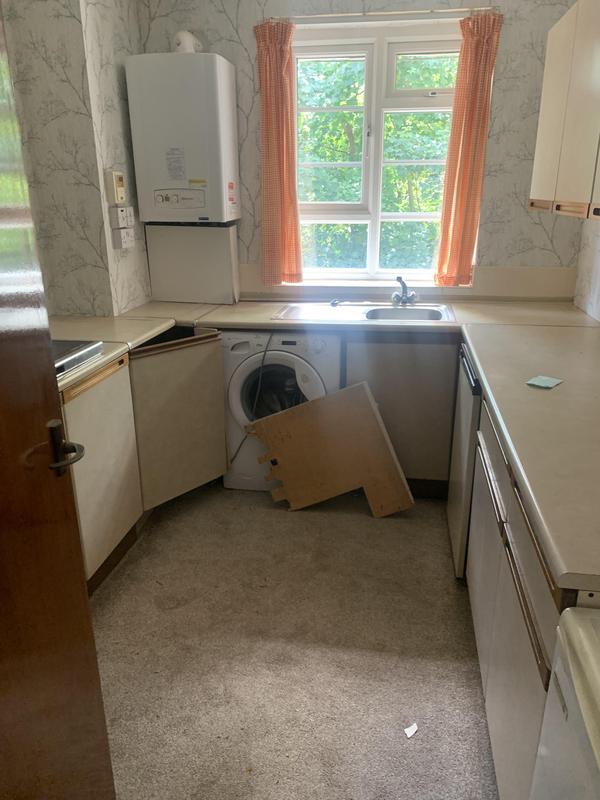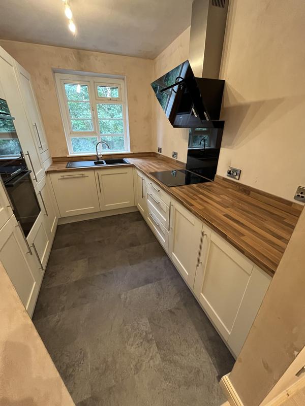 - This is the re-fitted kitchen, when we got there a cowboy builder had made an extension and did an awful kitchen as part of it. We removed the furniture and fully re installed the kitchen