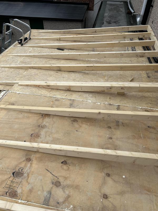 - We raised the roof to give the flat roof some fall and keep the pipework protected