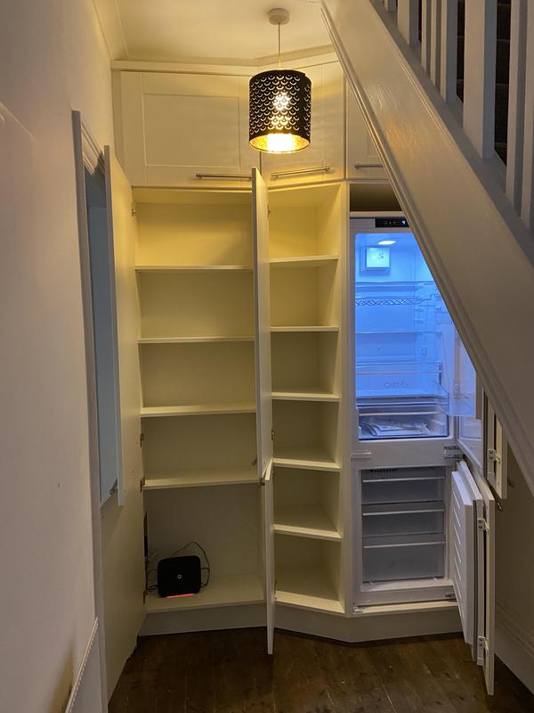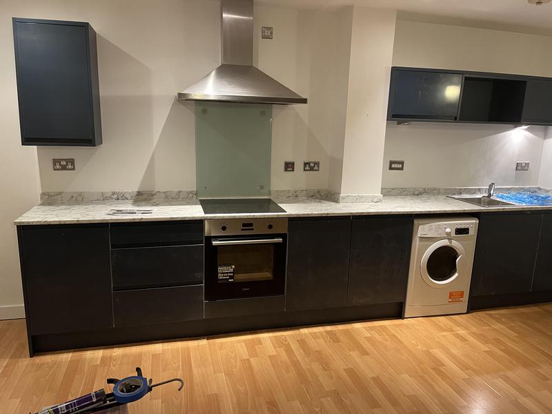 - In this run we have washing machine, integrated fridge freezer, pantry, oven and combi