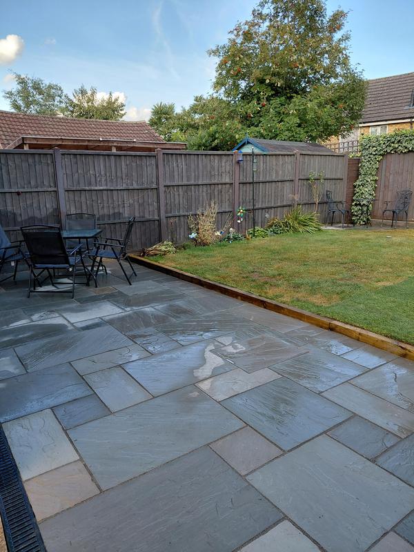 Sue - Image 1 "Just had a garden makeover by the lovely guys from Pavemaster. I had an old patio and wall removed, as well as a shed and a concrete garage base removed. These were replaced by a new sandstone patio and additional lawn. The guys were friendly, polite and extremely hard working. I am very pleased with the end result."