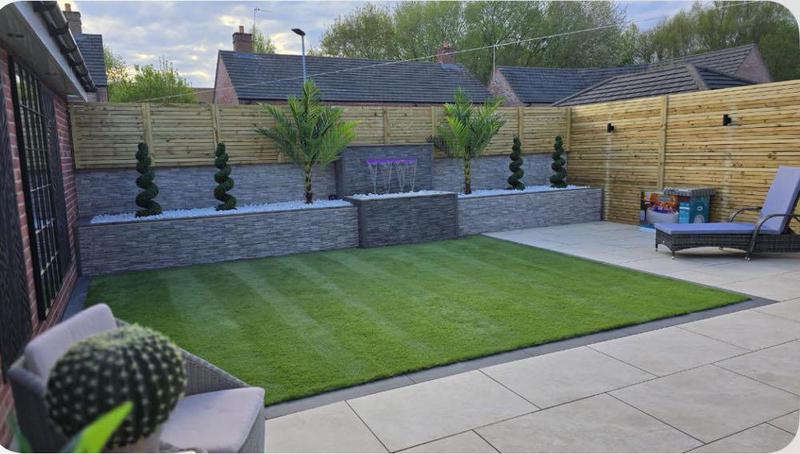 Designing an installing patios, driveways and fencing and some bespoke features such as water features, composite and baton fencing for happy customers in Cheshire and the surrounding area.