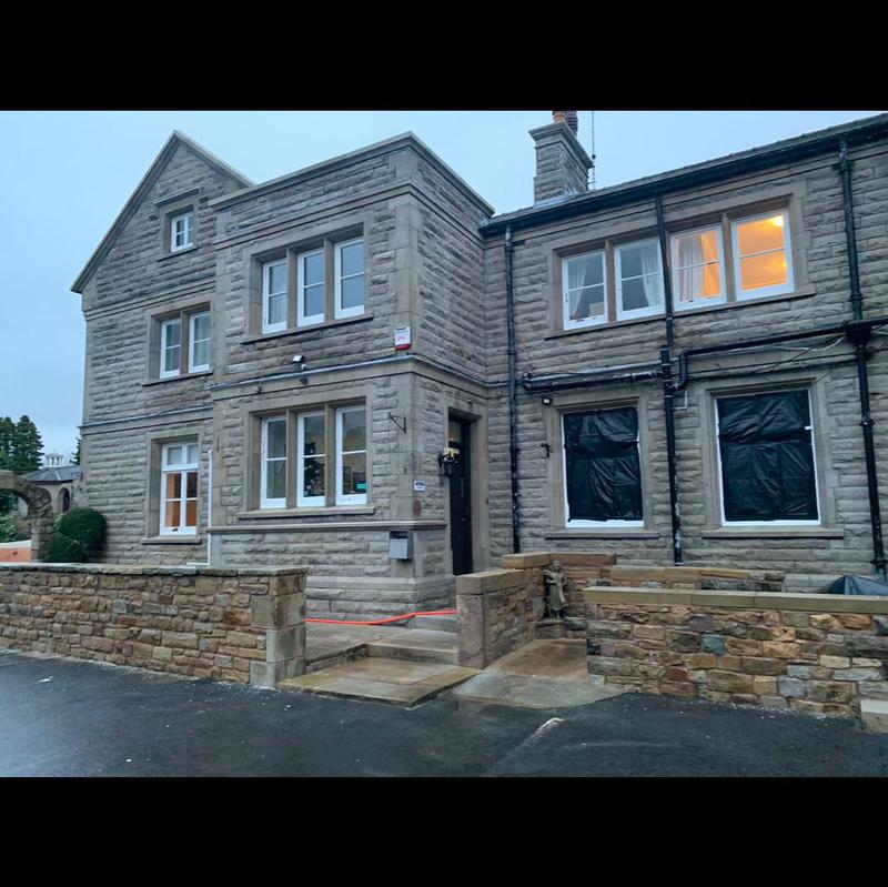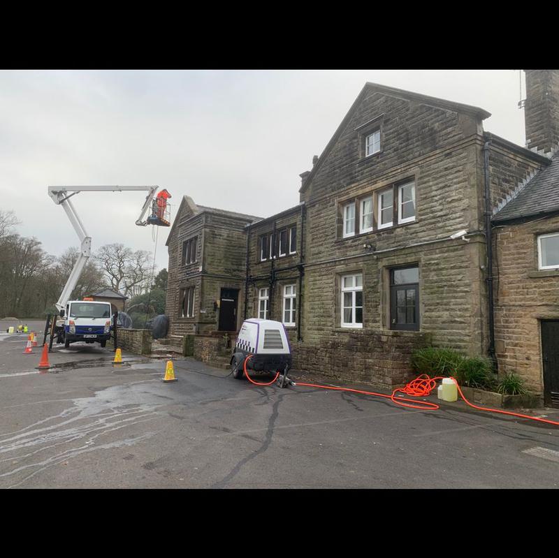- Stonework cleaned on an old hall, cleaned from MEWPS using a combination of chemicals and steam to remove carbon as well as dirt and algae