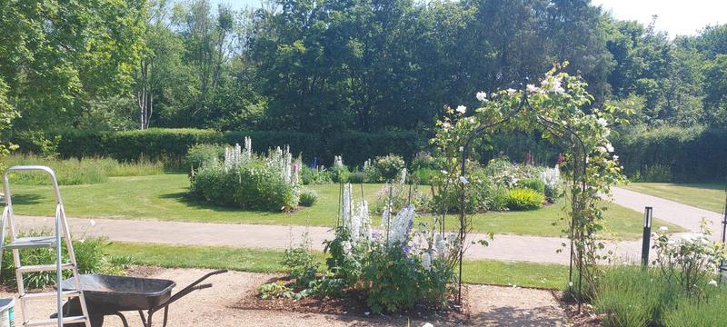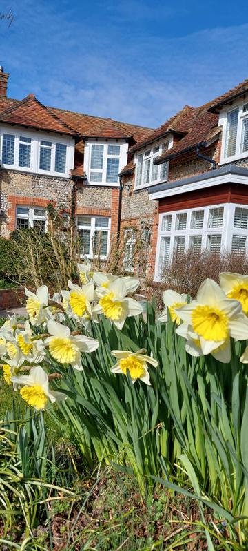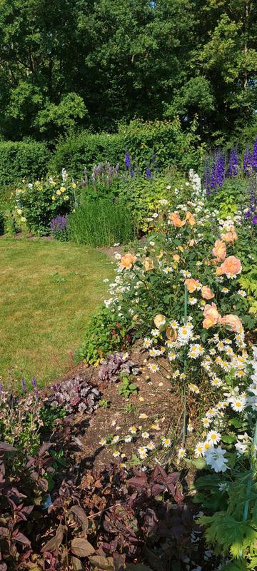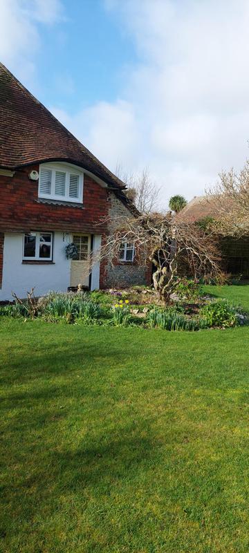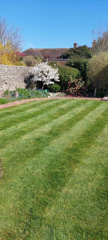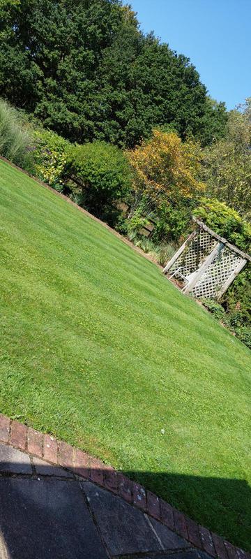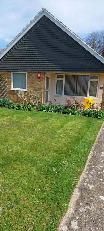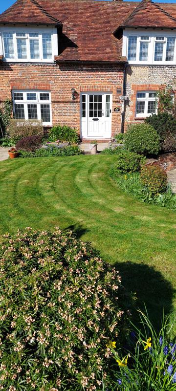 "Phil comes regularly fortnightly to cut the grass and when necessary to trim shrubs and hedges. He leaves lovely neat edges to the lawn to set off the grass and borders. All cuttings and trimmings are cleared away onto the compost heap or into the green trolley."