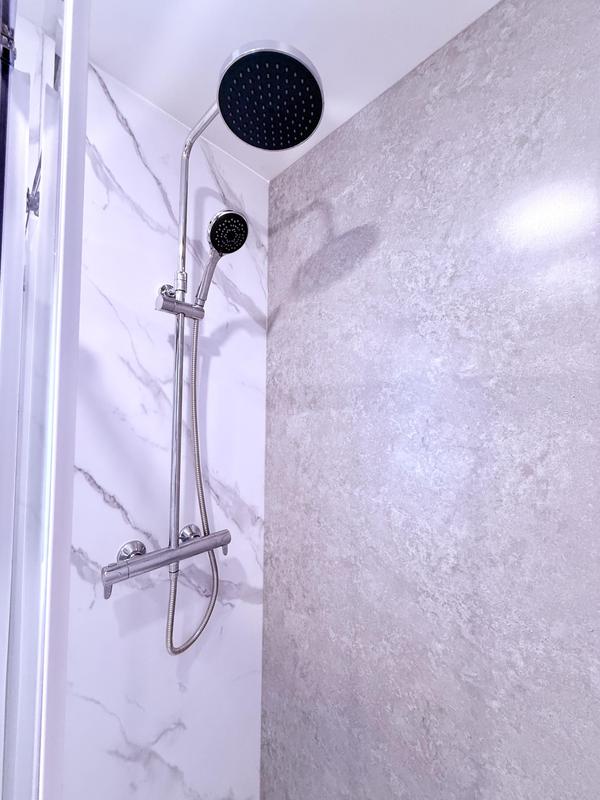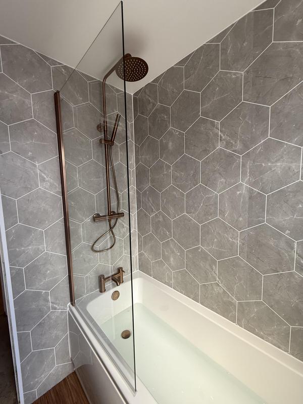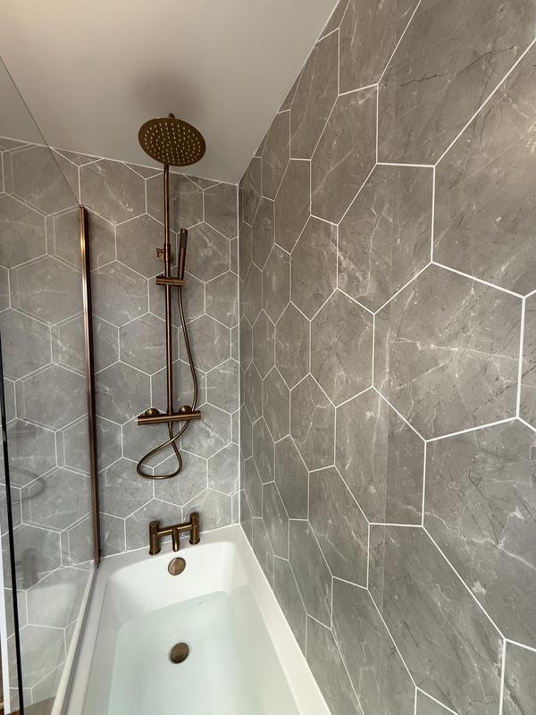 - Grid shower screen and feature shower wall panels