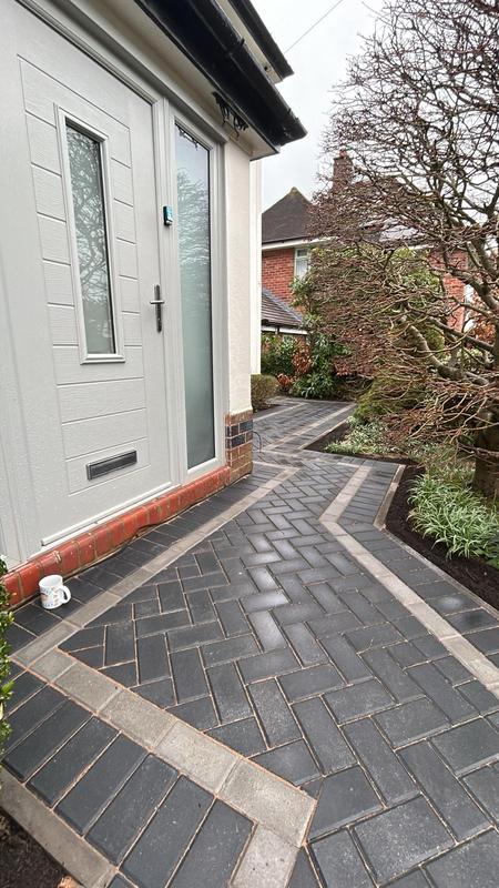 - Charcoal block paved driveway