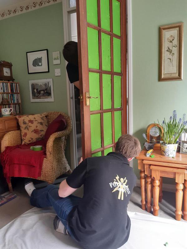 - Ruben hard at work giving our customer's door a lovely refresh.