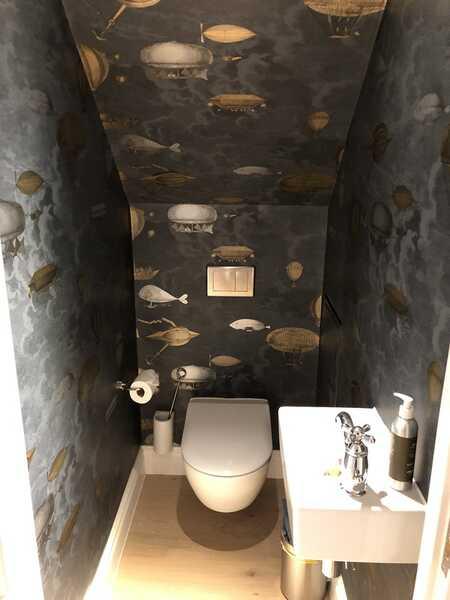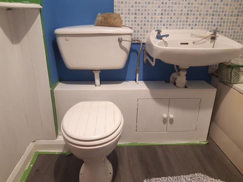 - An akward cupboard fitted under this sink and wc for maximum space, made by Poxy Jobs