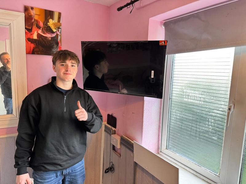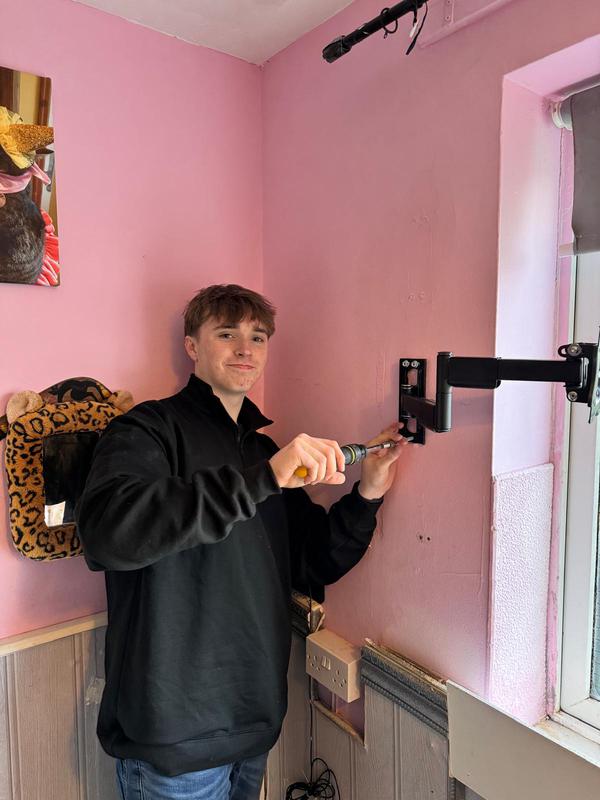 - Ruben getting the TV mounted...