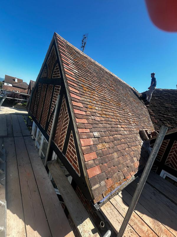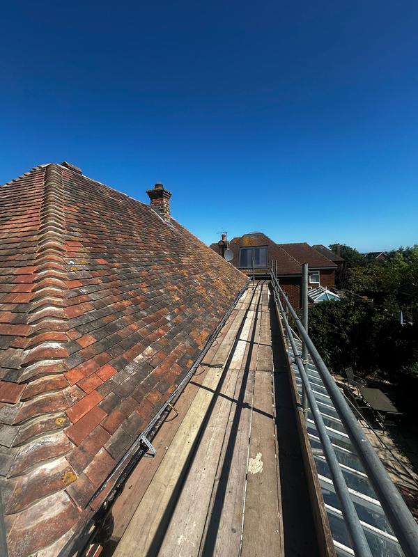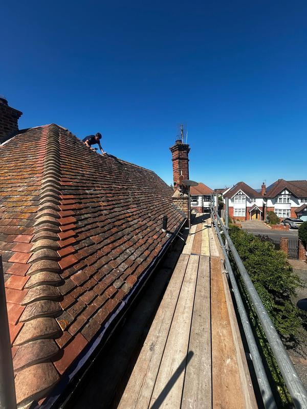 "The job involved renewing lead flashing, repointing ridge tiles and moss removal. The work was carried out in less than a dyad the roof now looks as good as new. Although the work created a certain amount of mess, the work area was left clean and tidy once the repairs were done. Our son works for Kent Police and he was happy to know that we had picked a reliable company to carry out the work. Their price was very competitive and would definitely use them again. Would also recommend them to friends and family."