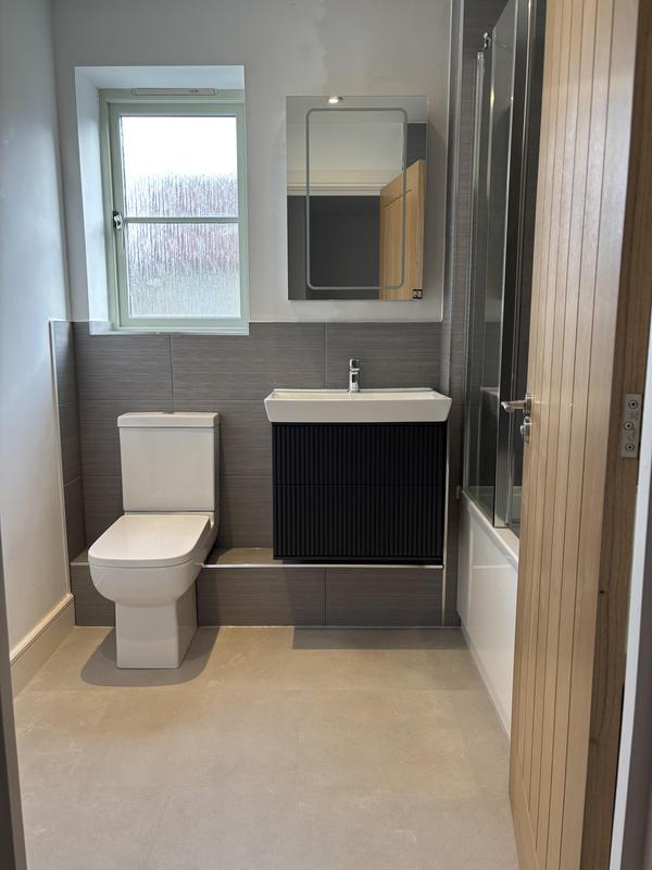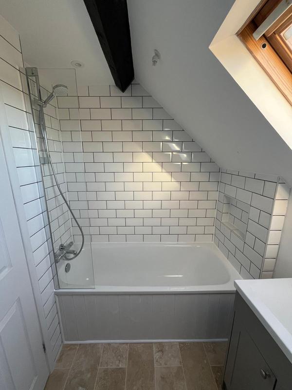 Catherine - Image 1 "I would highly recommend Probaths. The work is done to the highest of standards. Quoted promptly and stuck to it. Turned up on the agreed day. Excellent with recommendations to problems, ours was a tricky room to do with beams to work around. Probaths are able to do all the work plumbing, electrics, floor laying, fitting, ordering and supplying all the materials leaving me with only the decorating sort out ! I’m delighted with the result. The experience couldn’t have been any easier. We intend to have Probaths return to do another bathroom for us in the near future."