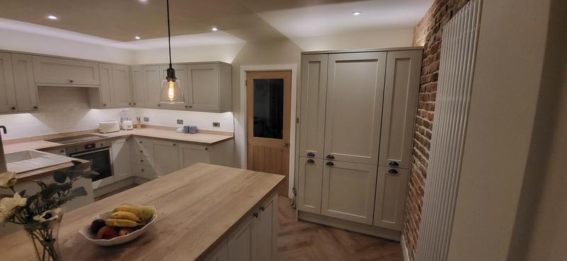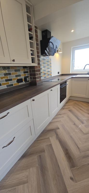 "Rhys recently completed our garage conversion and a new kitchen, including new electrics, plumbing, plastering, painting and new flooring, as well as removing a side door in the kitchen. Plus more requests from us along the way without any issue. Communication was brilliant and we were kept informed at every stage. The level of work is outstanding and far exceeded our expectations. We’re so pleased with everything and would definitely use him again and highly recommend him."