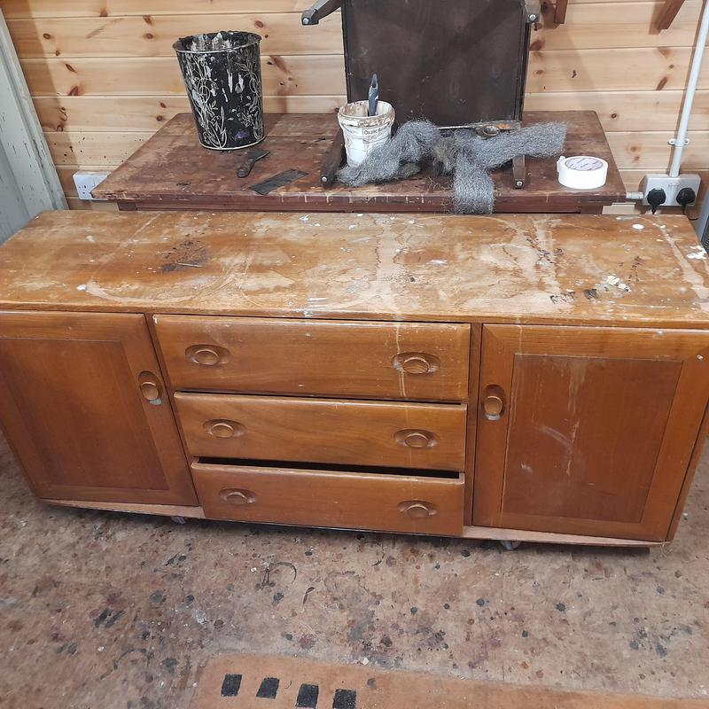 - Before restoration of an Ercol Side board.