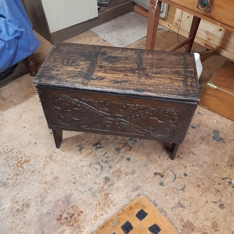 - BEFORE: restoration of a Large wooden chest.
