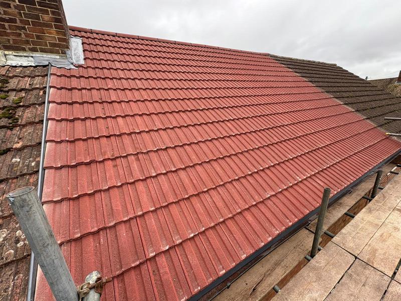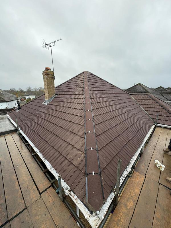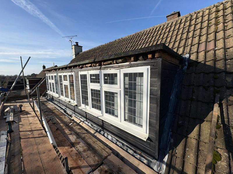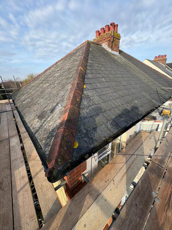 "Slate roof replaced with grey tiles, chimney repointed, lead flashing replaced, new guttering facias and soffits.Lee and his team did a great job very happy with the results."
