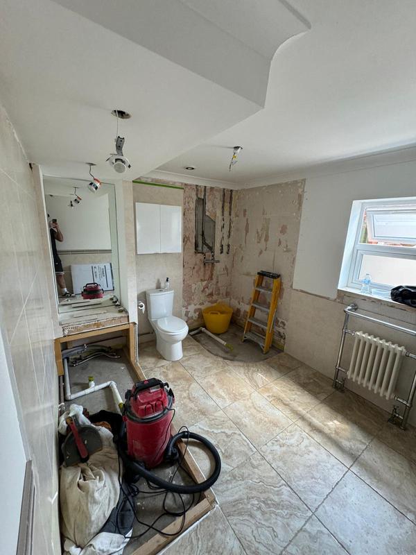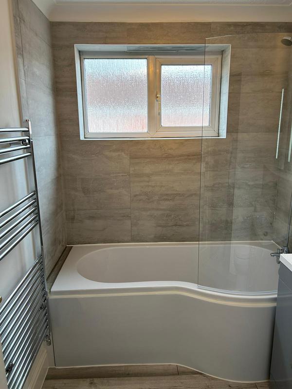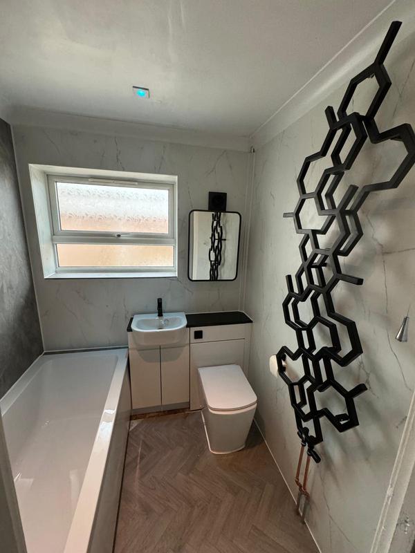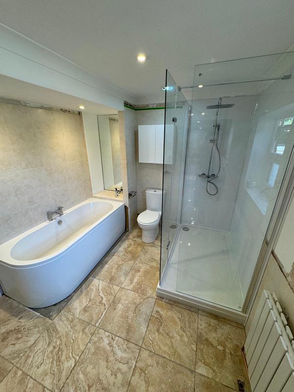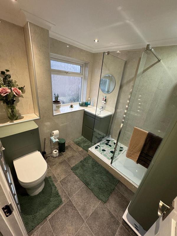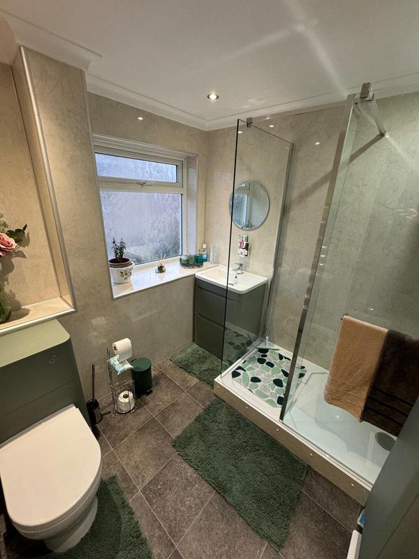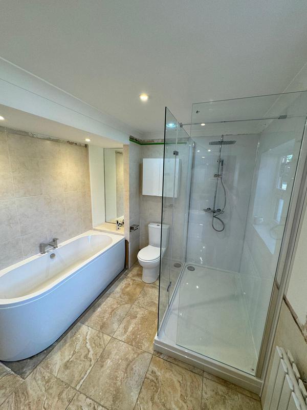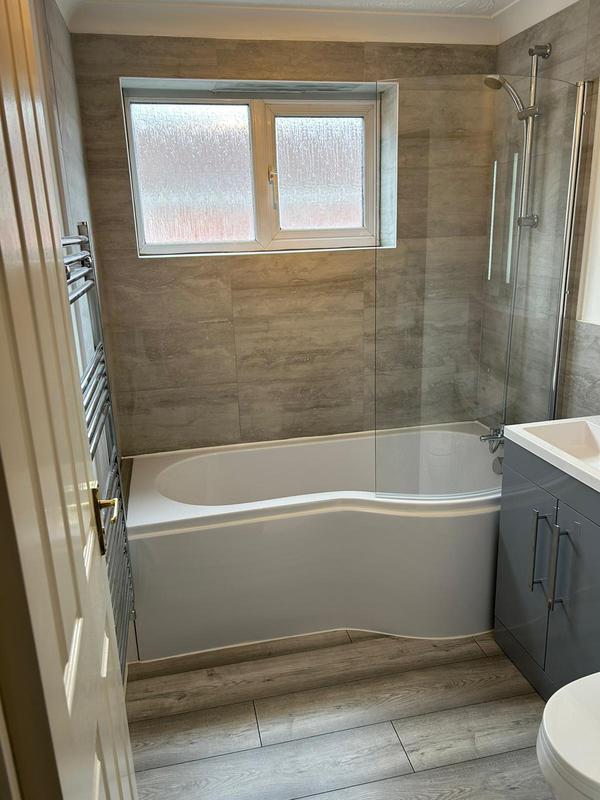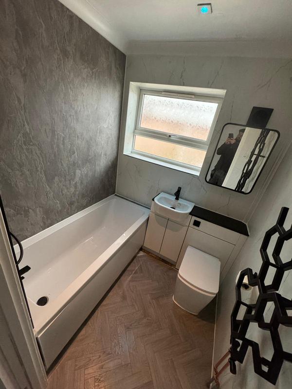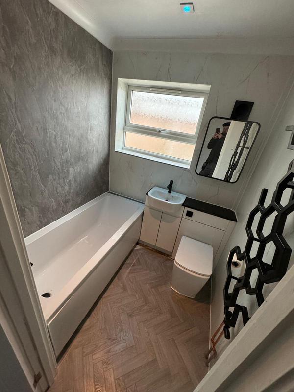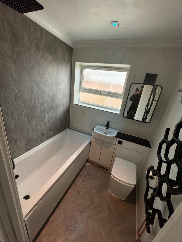 "What a friendly helpful team of guys who took my dark dingy bathroom and made it bright spacious and modern . They listened to what I needed and made it happen . Ross genuinely wants to create the space you need I’m over the moon . He did everything gutted it and rebuilt it fixings and features . No fuss cleaned as they went along worked full days except when tiles and floor tiles were drying . No hidden extras"
