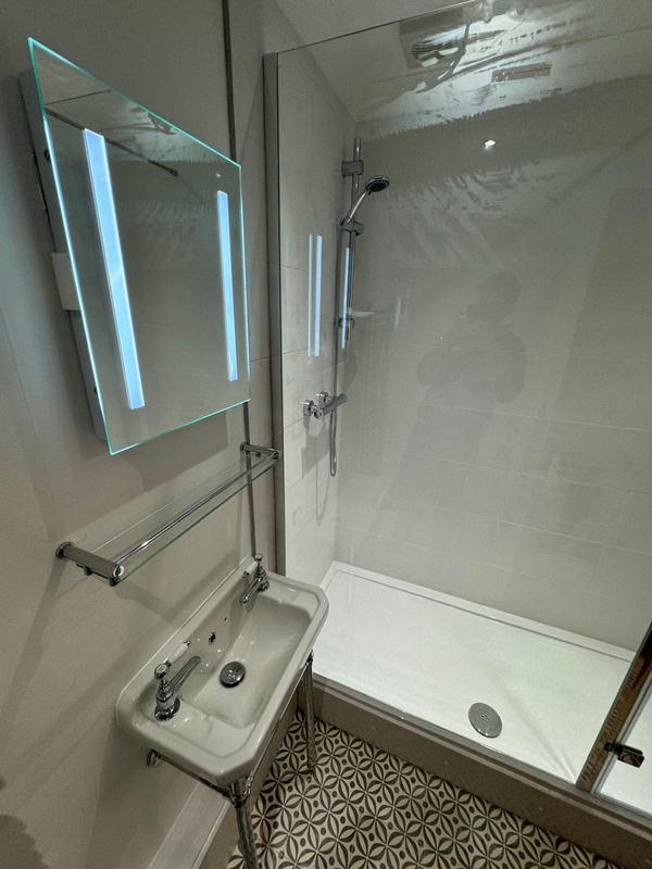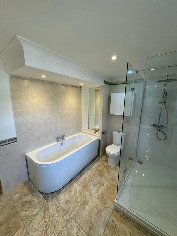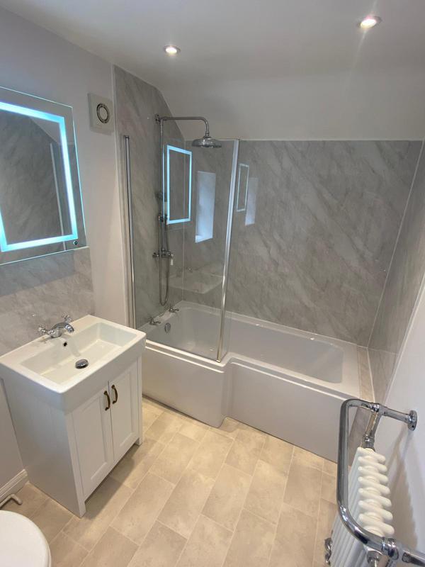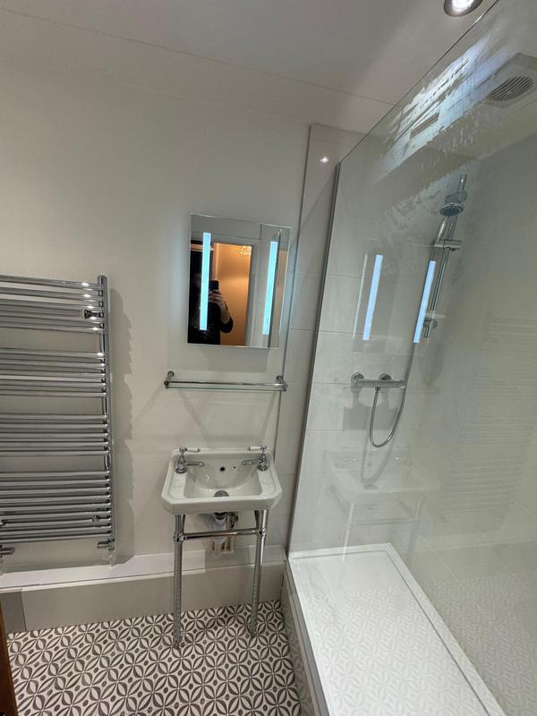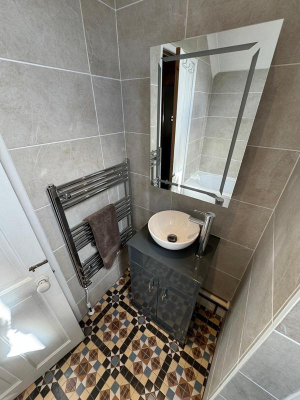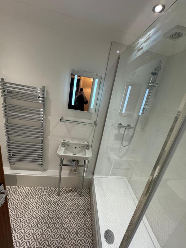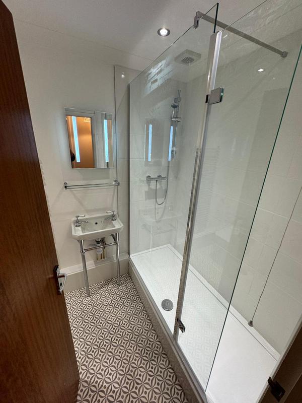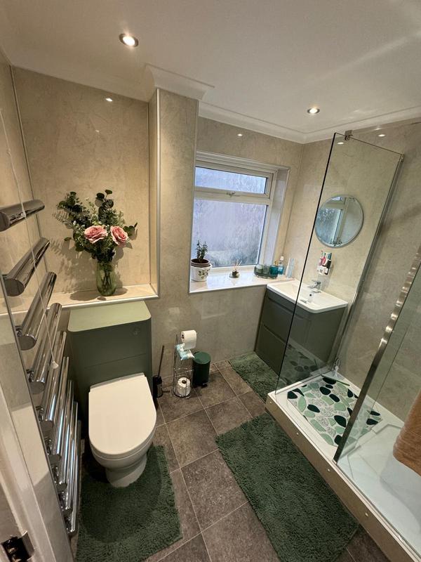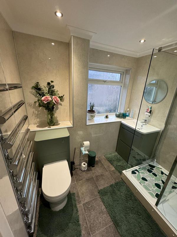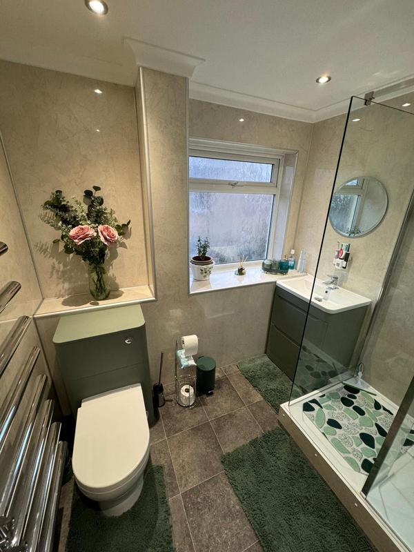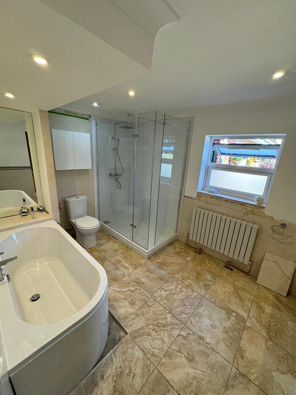 "What a friendly helpful team of guys who took my dark dingy bathroom and made it bright spacious and modern . They listened to what I needed and made it happen . Ross genuinely wants to create the space you need I’m over the moon . He did everything gutted it and rebuilt it fixings and features . No fuss cleaned as they went along worked full days except when tiles and floor tiles were drying . No hidden extras"