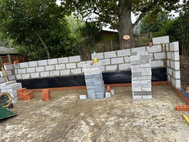 - The foundation work up to Damp Proof Course in Brentwood ready for beam & block.