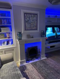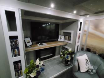 - Media wall with cabinets interior lighting all hand crafted with many features
