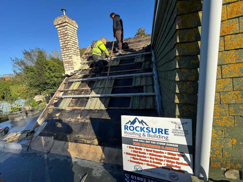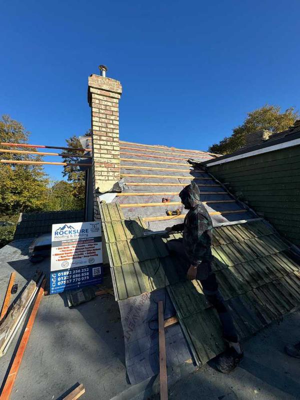 - Reroof being carried out in hastings, was sussex, new underlay system being installed, reusing the old original tiles with a new dry rid system on top