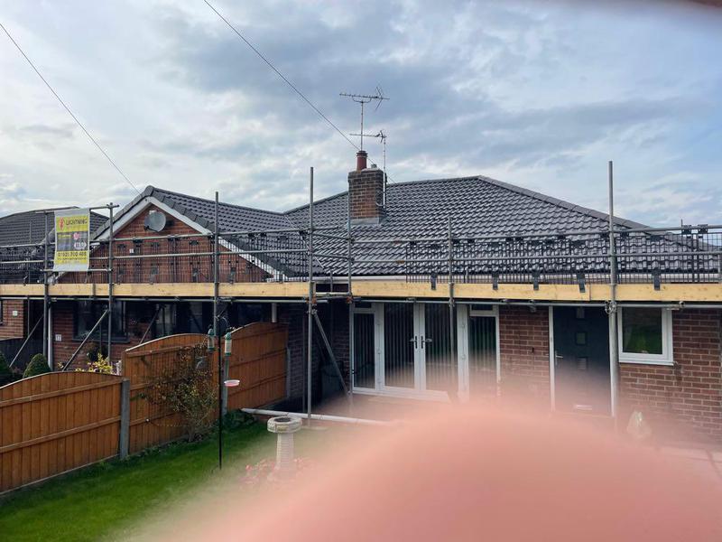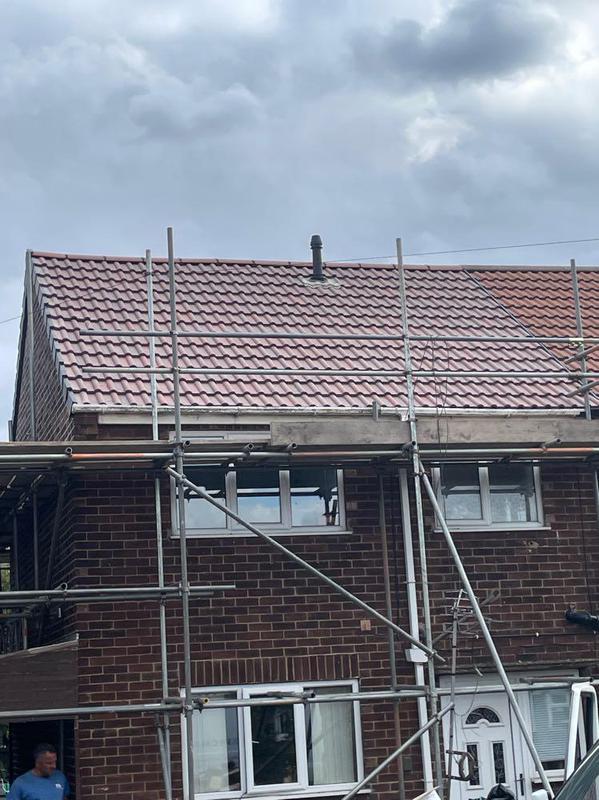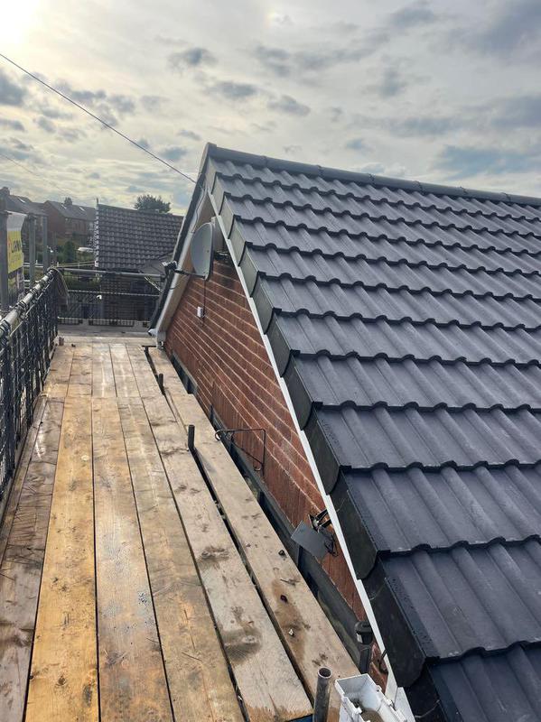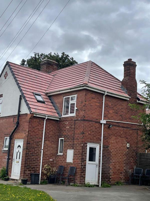 - Maintenance free roof replacement in Maltby using flat concrete Northstone rules with upvc fascia soffits and guttering.