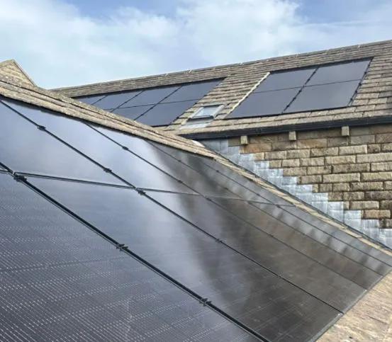 - Solar Panel Installed on Yorkshire Stone Roof using the French GSE in-roof mounting system.
