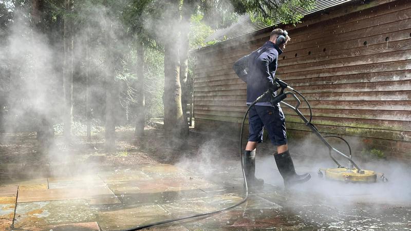 Pressure washing with hot water / steam to shift those stubborn, dirty areas with ease. More heat / steam means less pressure and less damage to surfaces.