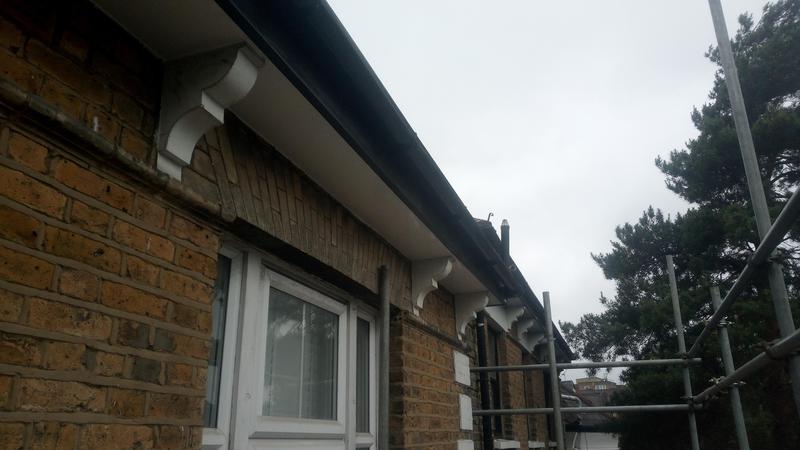 - New white pvc soffit boards installed with black pvc fascia and guttering.